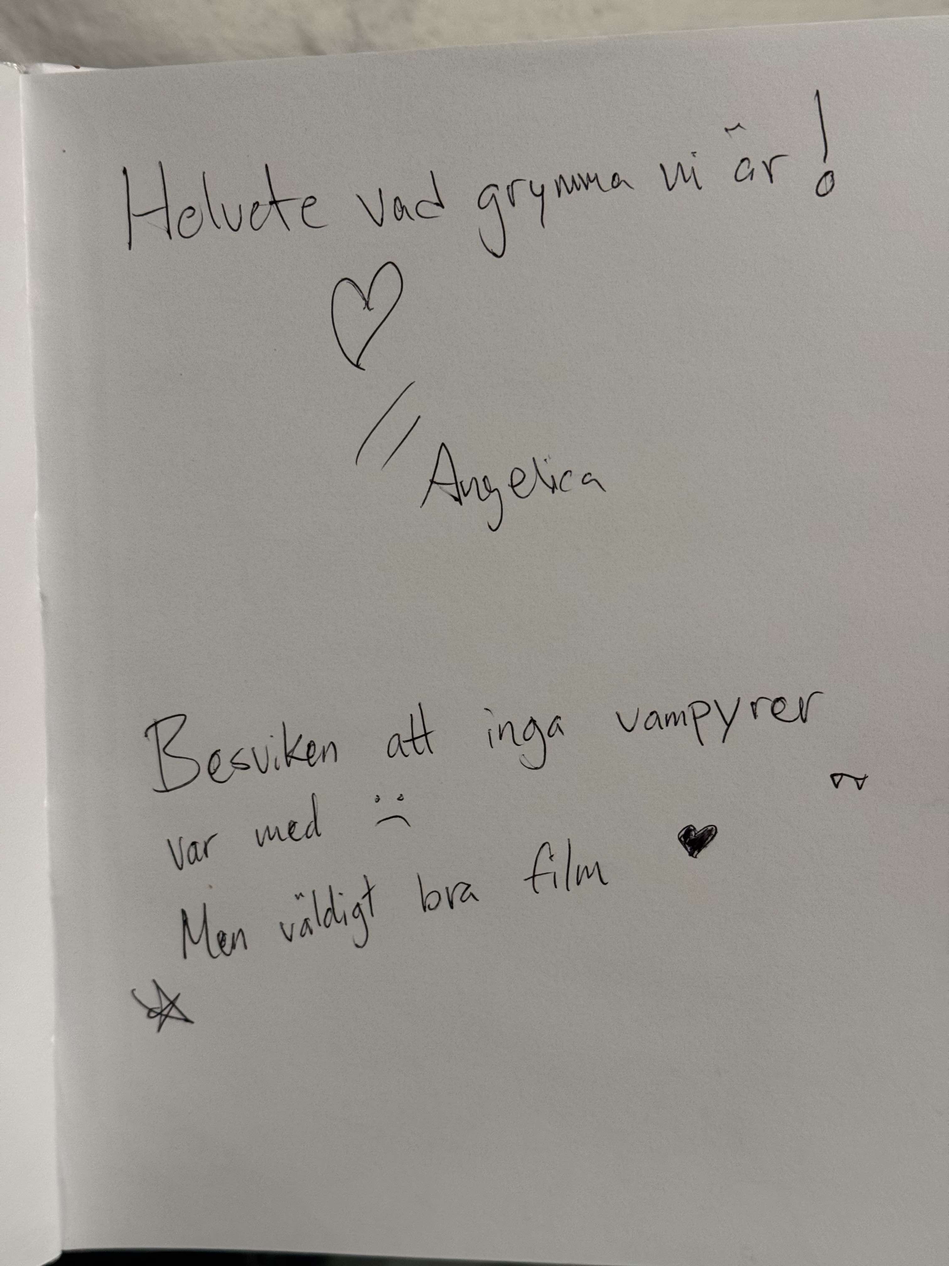 Här kan ni se vad tidigare besökare har skrivit och tyckt om Plocka tänder med trasiga fingrar och vår roadshow. Vi har samlat hälsningar, reflektioner och spontana tankar från visningarna runt om i Sverige – allt från inspirerande kommentarer till personliga upplevelser av filmen.